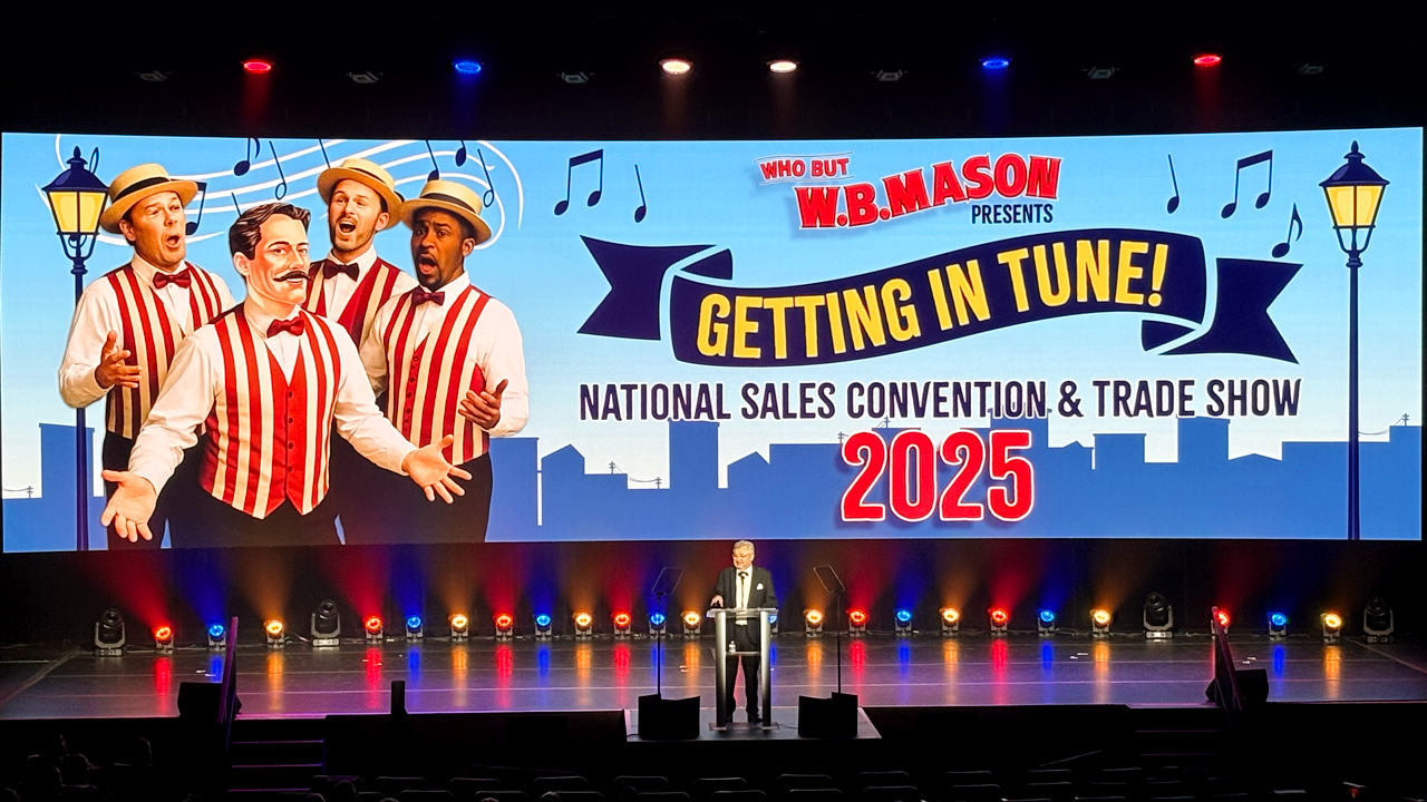 W.B. Mason is a leader in their industry and needed a sales convention that reflected it. And again, they turned to MK3. We partnered with their team to design and produce another high‑impact live event, driving every phase of the project from concept to completion. The experience featured original video production, custom animations, staging, and speaker coaching, all integrated into a seamless, captivating show for more than 1,300 employees. The result was as polished as it was powerful, nudging the bar a little higher and prompting W.B. Mason’s CEO to declare the event their “best ever.”